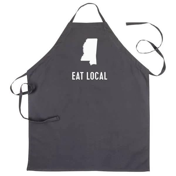 Eat local! The perfect gift for any foodie or BBQ master, our aprons show off state pride and protect you from messes. Our grill aprons are durable and feature the Mississippi silhouette with trendy typography.