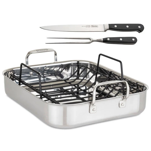 - Includes Roasting Pan with Rack and 2-piece Carving Set