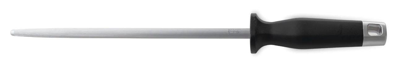 - 10 inch sharpening steel; perfect to realign knife edges and maintain sharpness
