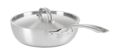 Viking 5-Ply professional cookware is constructed to maximize heat transfer for even heating across the base and up the sides of the pan. The stainless exterior features an elegant satin finish and is magnetic to ensure compatibility with all cooktops including induction. The three layer aluminum core works to transfer heat events and quickly throughout the pan. The 18/10 polished stainless interior is easy to clean and maintain. Our signature Viking handle is ergonomically designed for Comfort, control and balance and will stay cool on the stovetop. The 12″ Covered Chef’s Pan utilizes a round base and deeply curved sides for easy stirring and incorporation of ingredients and includes a stainless steel lid which can be used to maintain heat, control evaporation and reduce splatters. Viking 5-Ply professional is stovetop, oven and grill friendly to 500F, NSF certified, dishwasher safe and carries a lifetime warranty. Handcrafted in the USA. Viking products began with a passion for cooking. Viking Culinary offers a full assortment of culinary products that deliver on the Viking promise of professional performance for your home. You know our kitchens; now discover our cookware.