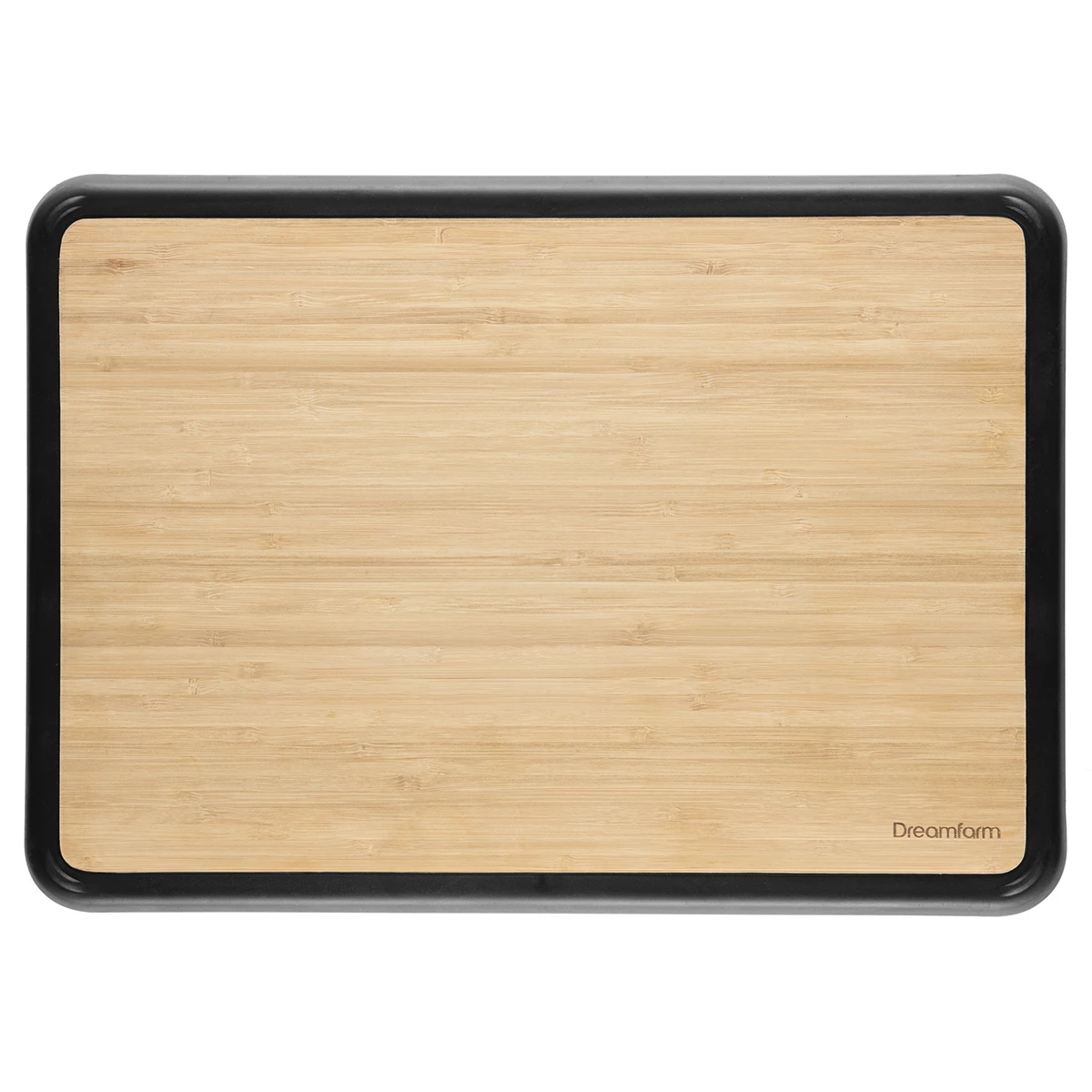 Fledge is the world’s best double-sided cutting board. Fledge has unique flip up edges that prevent food from falling or rolling off the sides when being transported to a pot, bowl or table for serving. Both Fledge and the double-sized Big Fledge have non-slip rubber feet and knife-friendly patterns on both sides, and a generous juice groove for carving on the underside.
