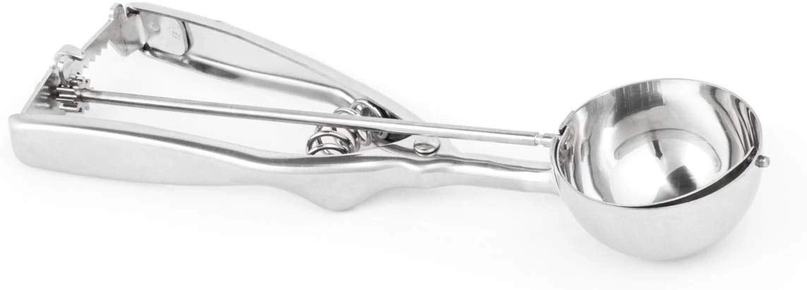 Scoop way more than just ice cream! Made of sturdy, sleek stainless steel, this versatile ice cream scoop is built to last. Its 2-3/8″ head holds 2 fl. oz., so it’s great for forming small portions of a variety of items. Whether you’re creating consistent, perfectly uniform balls of cookie dough, forming meatballs, or filling your bowl with balls of ice cream, this scoop will bring ease to your kitchen. It conveniently features a spring action for easy release and can be used both left-handed and right-handed! Put an end to differently sized, uneven cookies, and bring some consistency into your life.