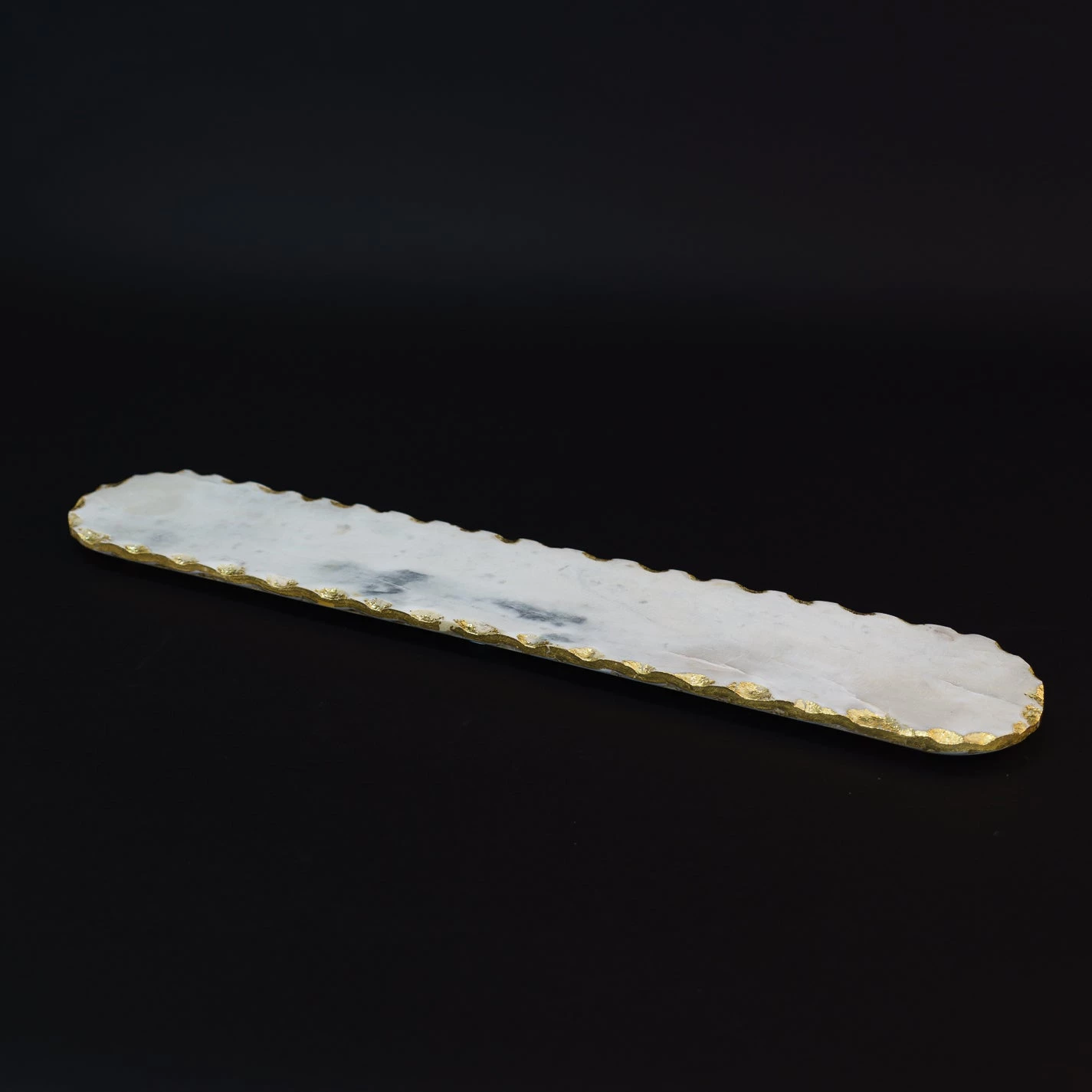 INDIA HANDICRAFTS GOLD MARBLE LONG OVAL TRAY