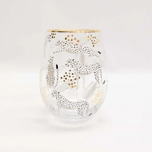 MARY SQUARE CHEETAH STEMLESS WINE GLASS
