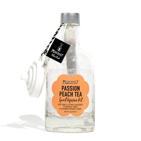 Staying in? Summer celebration? Entertaining guests? Enter the easiest alcohol infusion kit around. No gritty ingredients to strain out, no chunks of dried yuck floating in your drink. No added sugarâjust fresh, incredible taste that comes from the highest-quality all-natural fruit and spices (Ingredients like bee pollen and elder flower? But of course.) We even provide the funnel for bottle filling, so thereâs no mess for you. Weâve thought of it all, so you can focus on making your happy hour even happier. Howâs it done? Just add 1.5 cups of your favorite alcohol to steep your own flavored potion in days. Sip straight. Or add yummy extras to mix a custom cocktail. Makes up to 16 drinks.