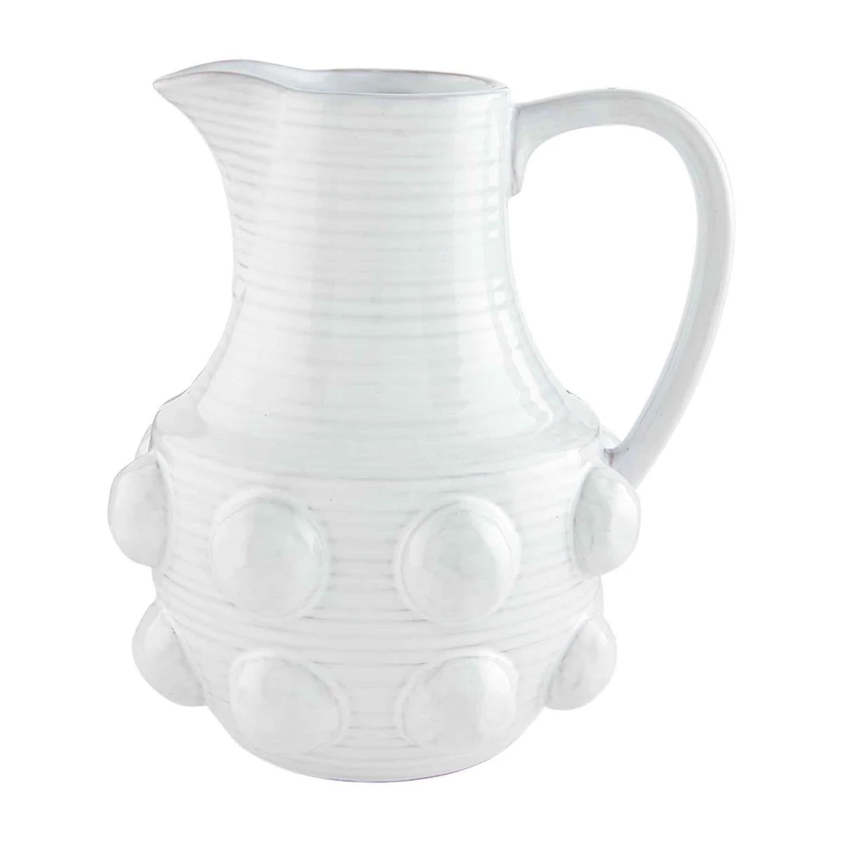 Sip back and relax with our Beaded Terracotta Pitcher. The glazed terracotta pitcher features beaded details throughout. The pitcher features a beautiful white coloring, making it a neutral serving piece to add to any event! Fill with cocktails, sweet tea or lemonade for your next gathering!