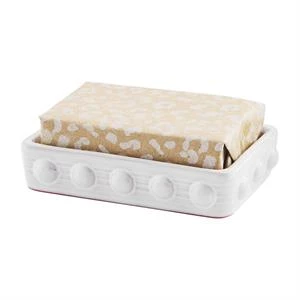 2-piece set. Kraft paper wrapped gardenia bar soap. Comes in glazed terracotta beaded dish.