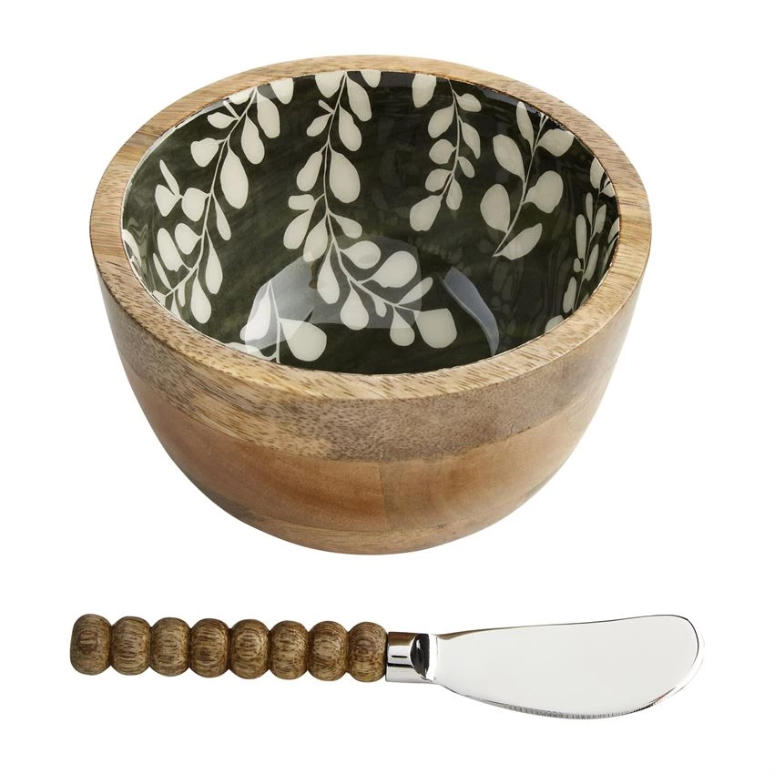 MUDPIE GREEN FERN LEAF ENAMEL DIP BOWL SET