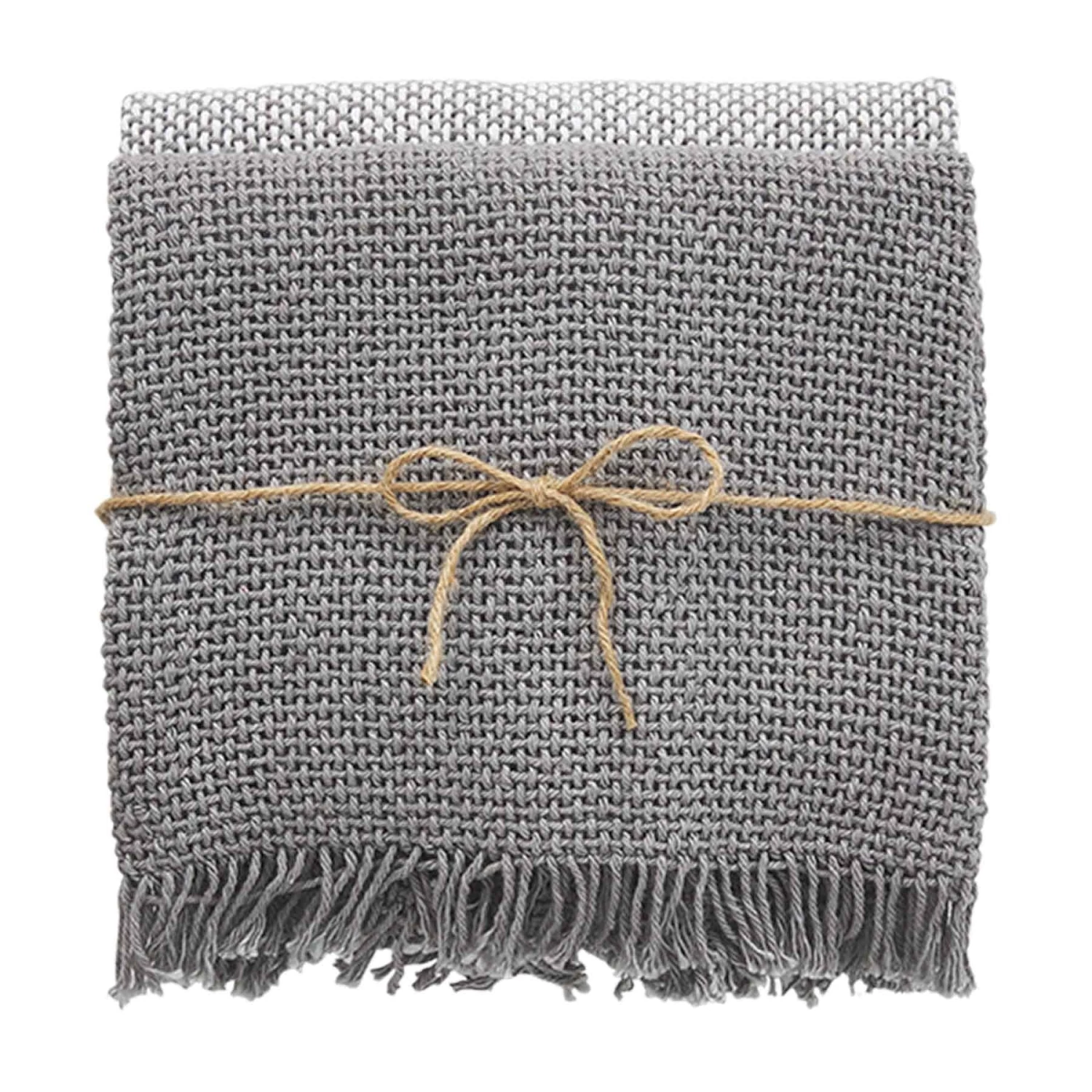 Set of two woven cotton hand towels with fringe trim.