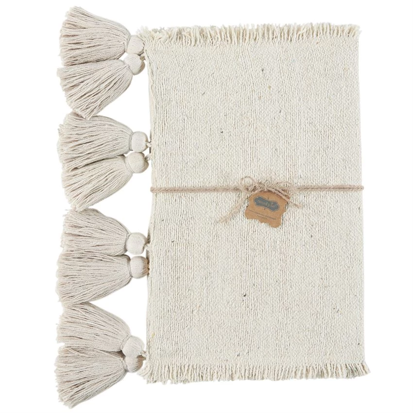 MUDPIE OFF WHITE PONCHAA TABLE RUNNER LINENS