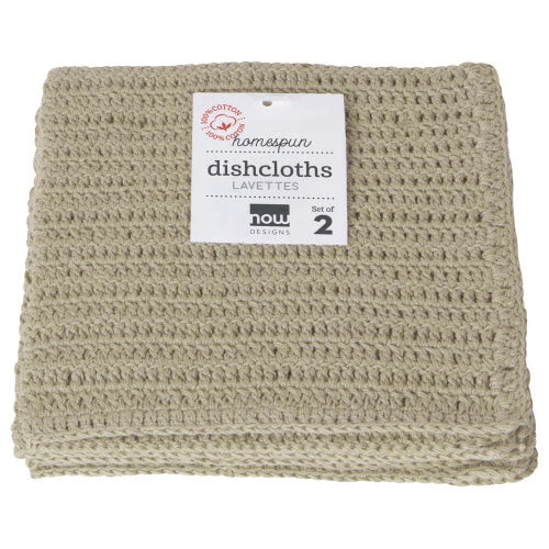 These homespun dishcloths are hard-working and sturdy, making them a sure household favorite. This set includes two solid colored matching dishcloths, each measuring 12 inch square. They are handmade from a crocheted construction for a classic look.