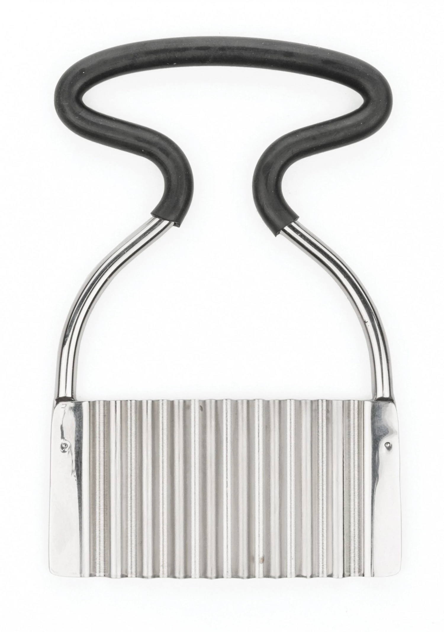 Our vintage inspired Crinkle Cutter is the perfect tool for slicing waffle fries, pickle chips or fruits and veggies for fancy garnishes. The handle provides a comfortable grip for control and a stainless steel blade for effortless slicing. Made from dishwasher safe 18/8 stainless steel with a soft rubber handle. 3″ x 4-5/8″. BPA free.