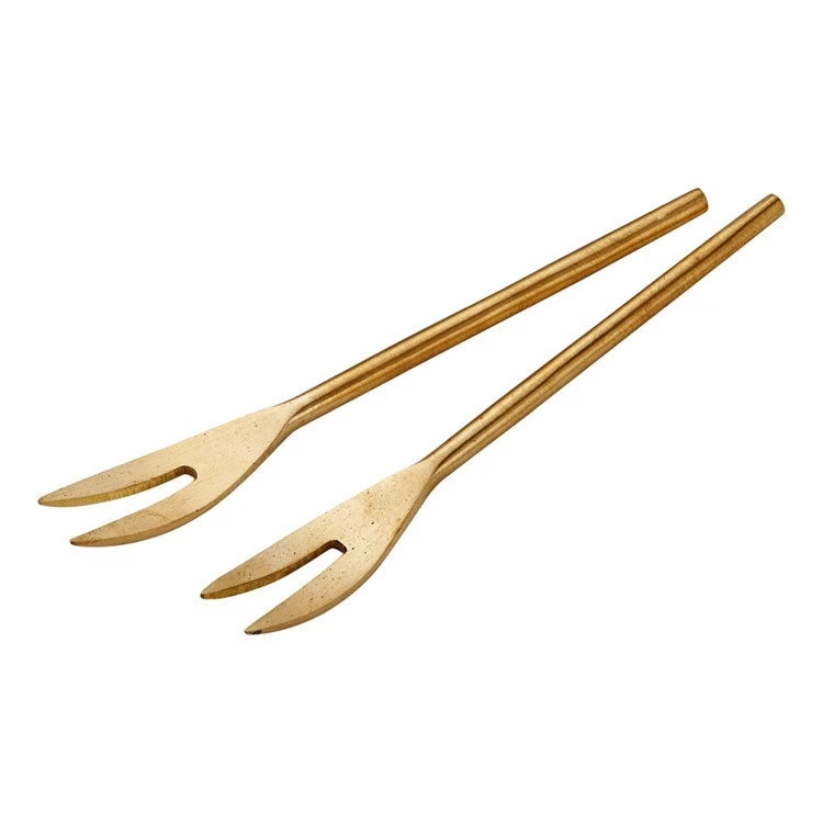 Perfect for tasting snacks and appetizers. Made from brass, these forks are finished with a matte polish and come in a set of two.