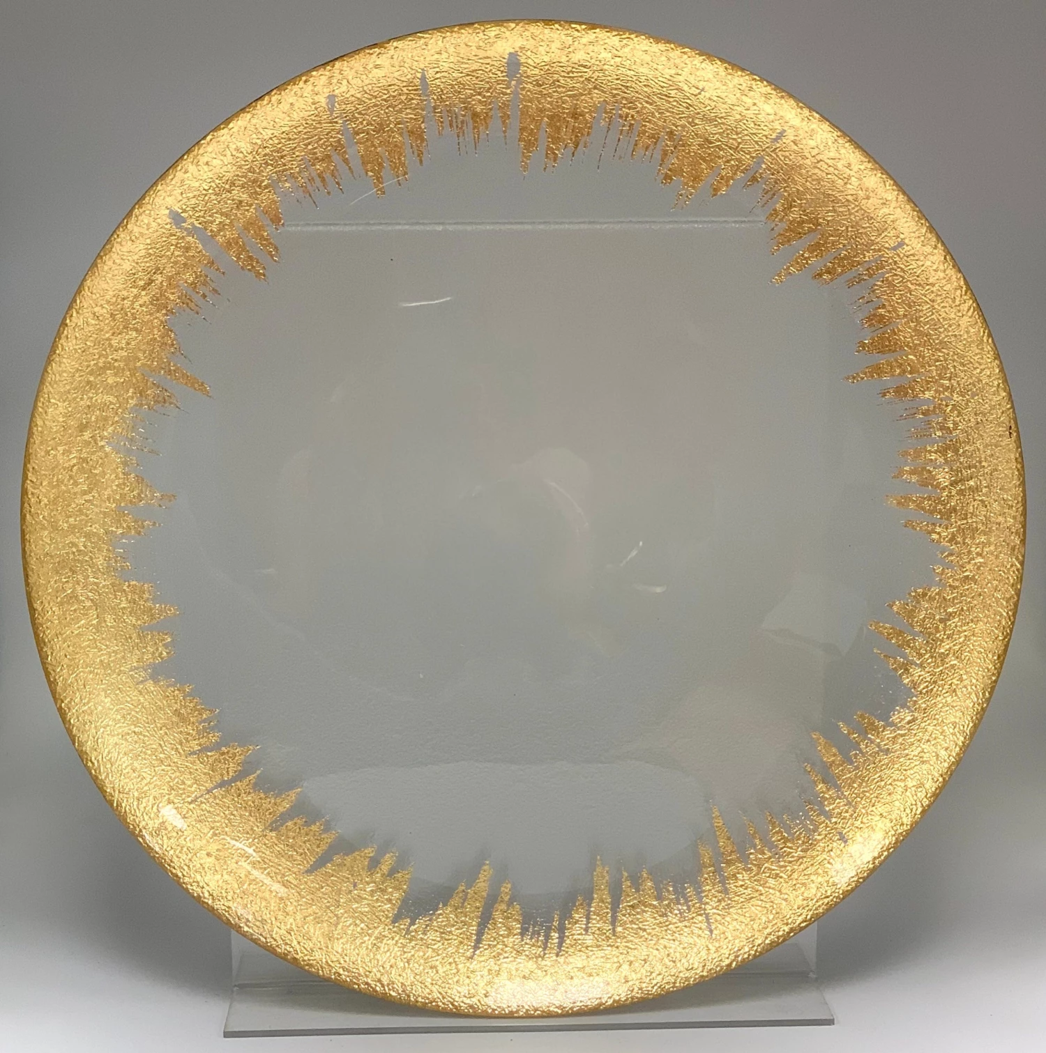 This round glass platter with a gold trim is absolutely beautiful! This platter would make a beautiful addition to any kitchen and is the perfect hostess gift!