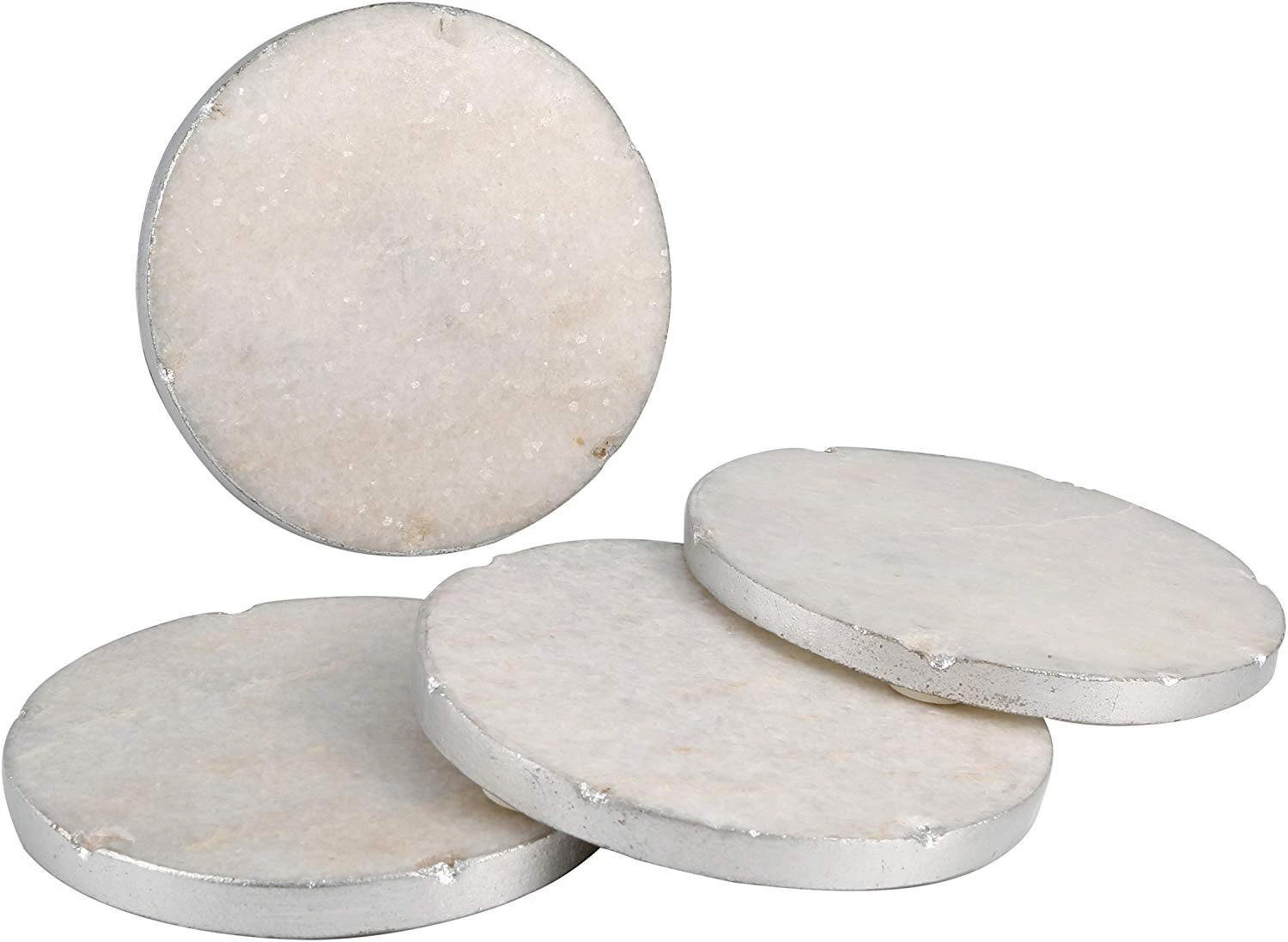 4 pc COASTER SET, MARBLE with SILVER EDGE