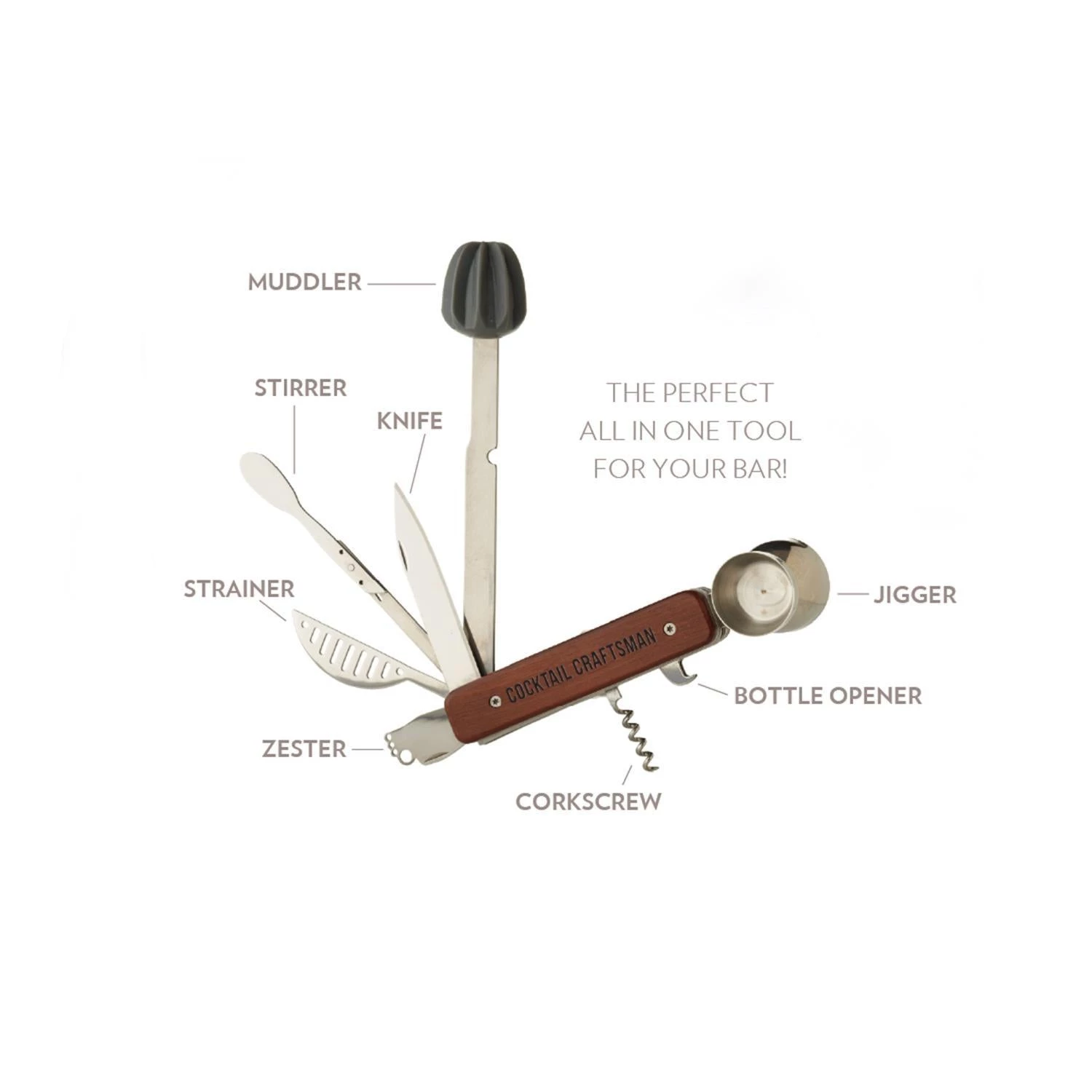 Be your own mixologist with this mix master multipurpose tool. A bottle opener, muddler, double sided jigger, strainer, small knife and a stirrer all in one!